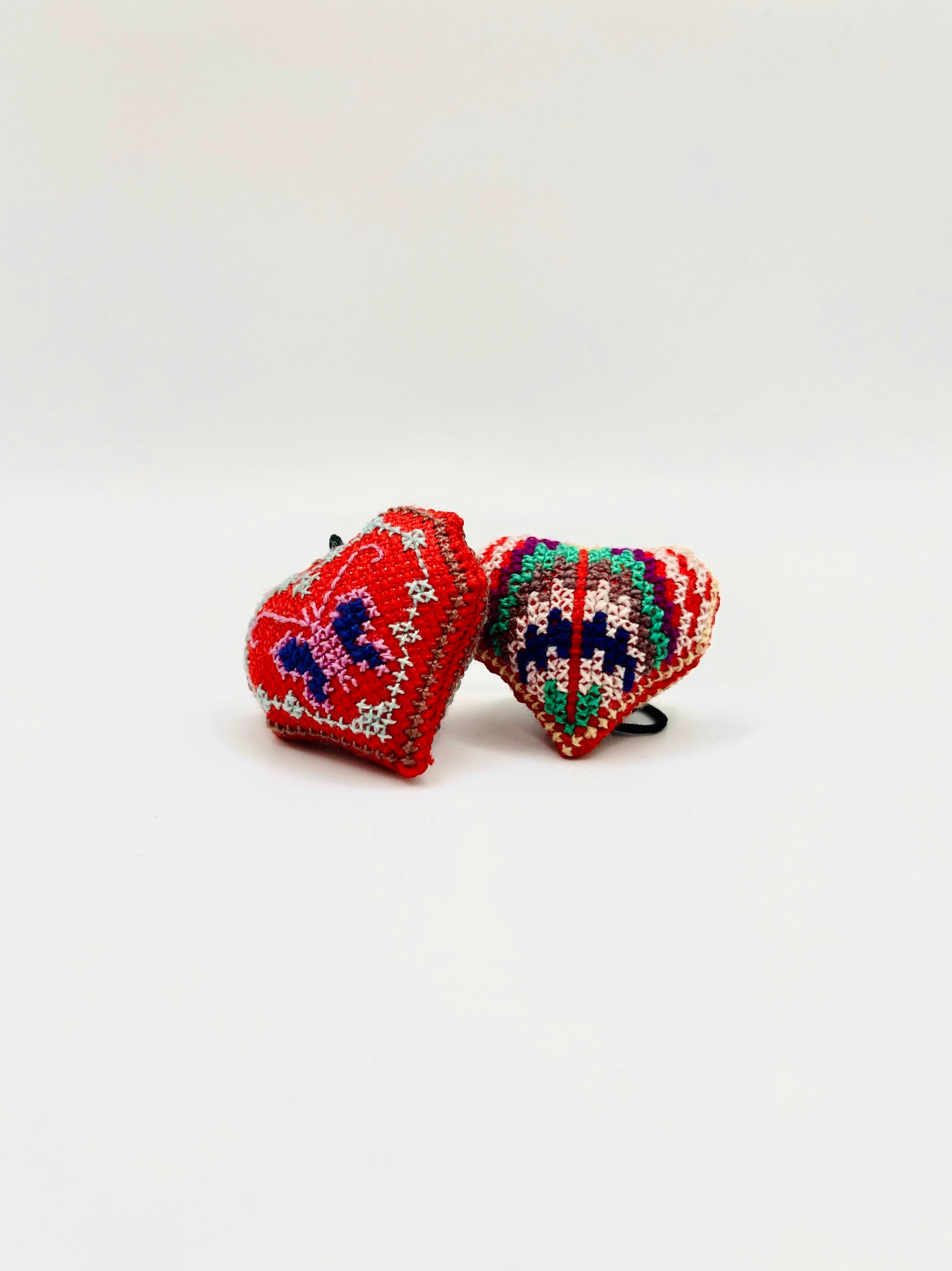 ラオスの少数民族モン族の女性たちによる刺繍ハートチャームを